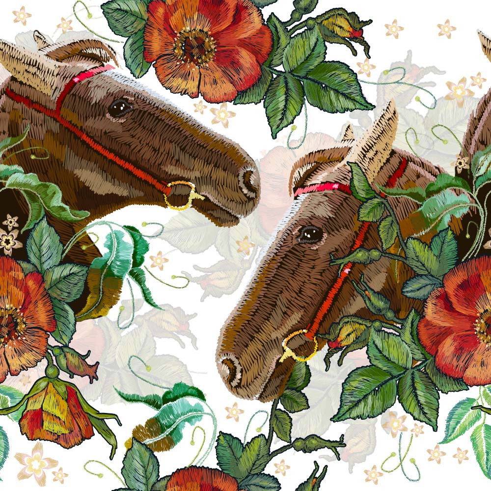 Hästbroderi vit