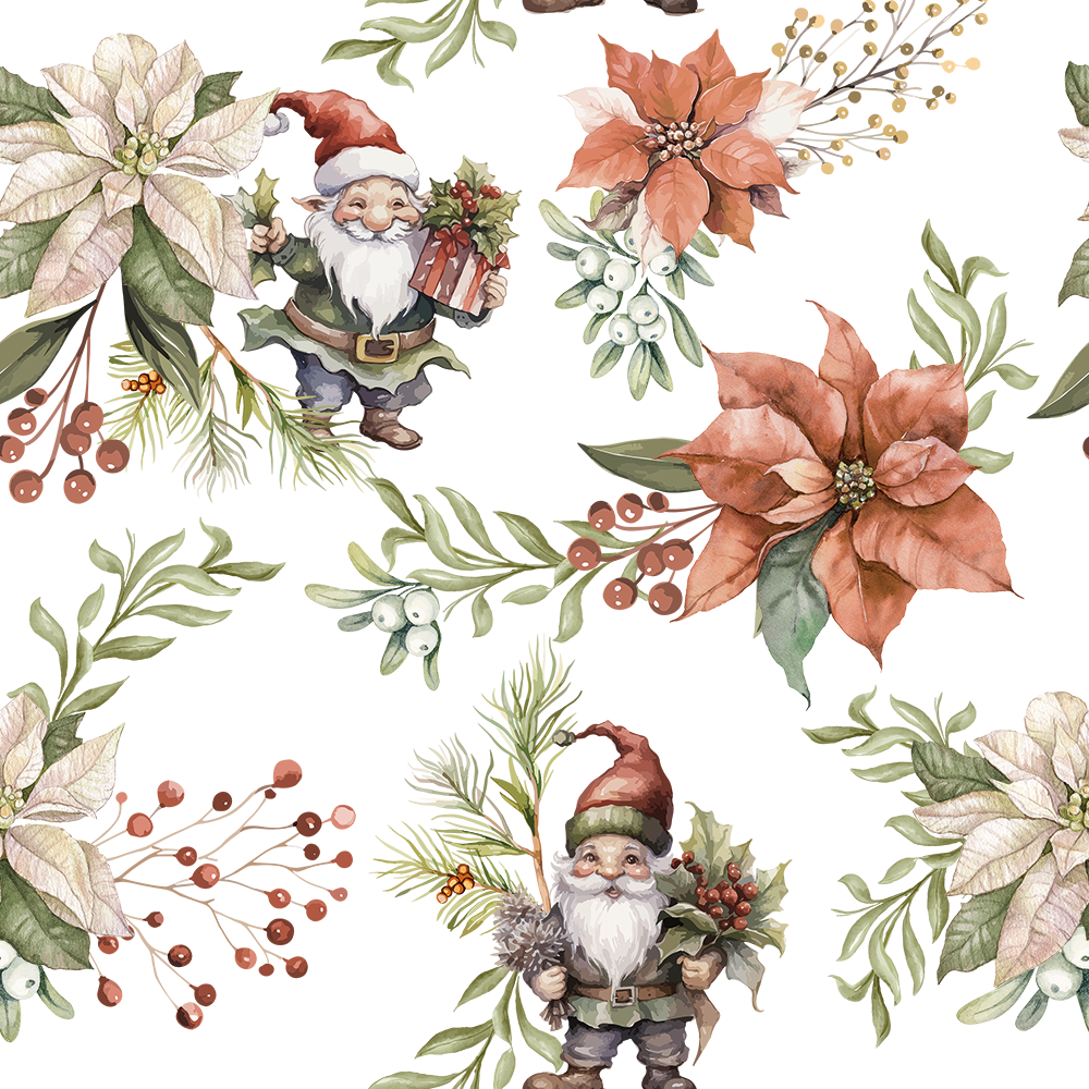 Tomtar och julstjärnor vit