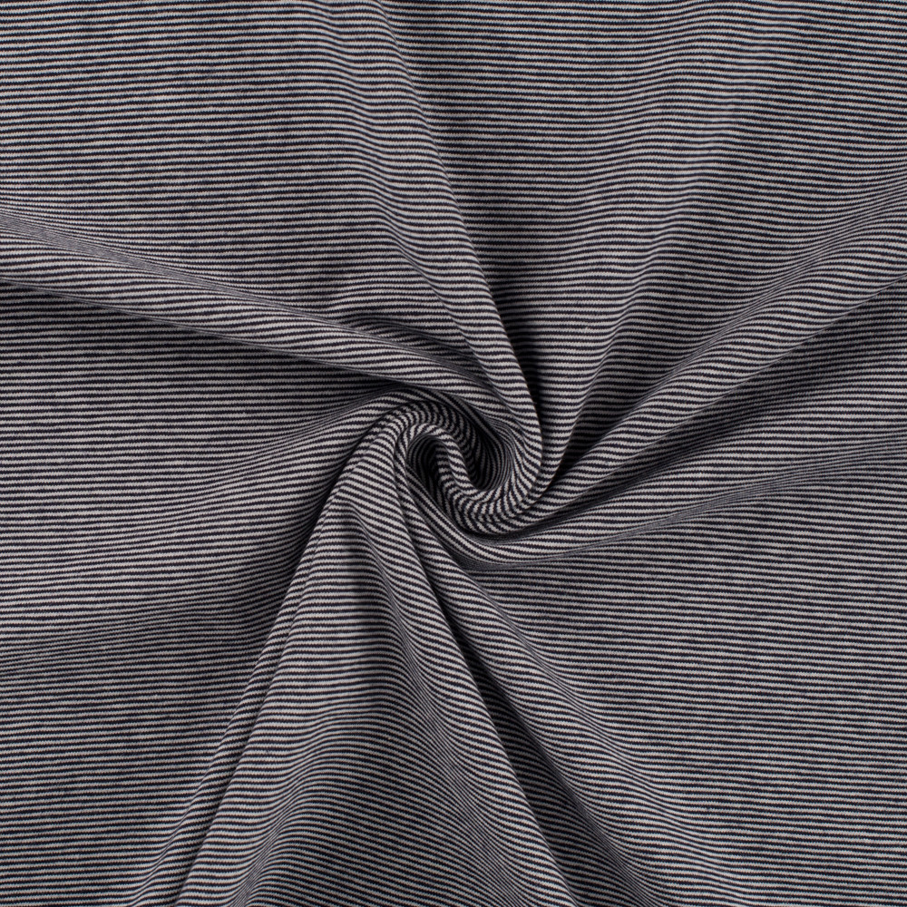 Smal randig trikå, ränder 1 mm. Mjukt härligt tyg till filtar, bodys, mössor mm.